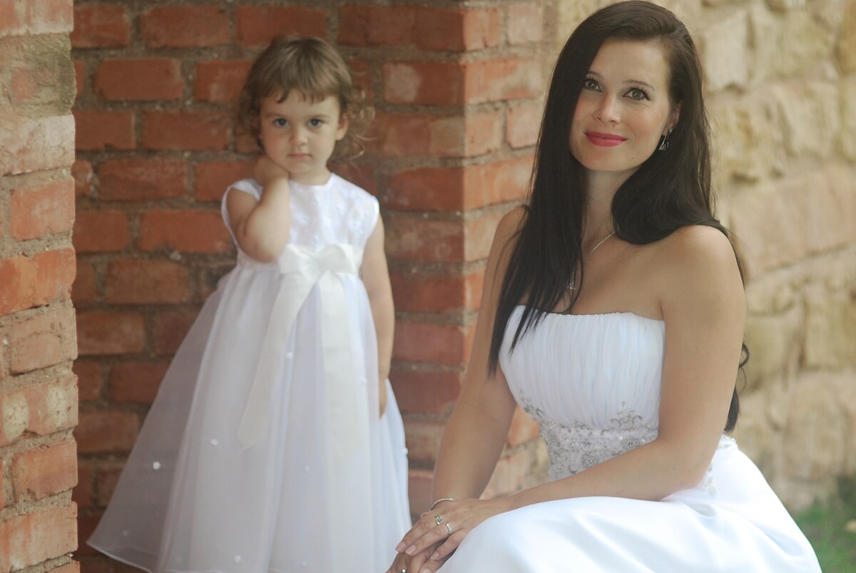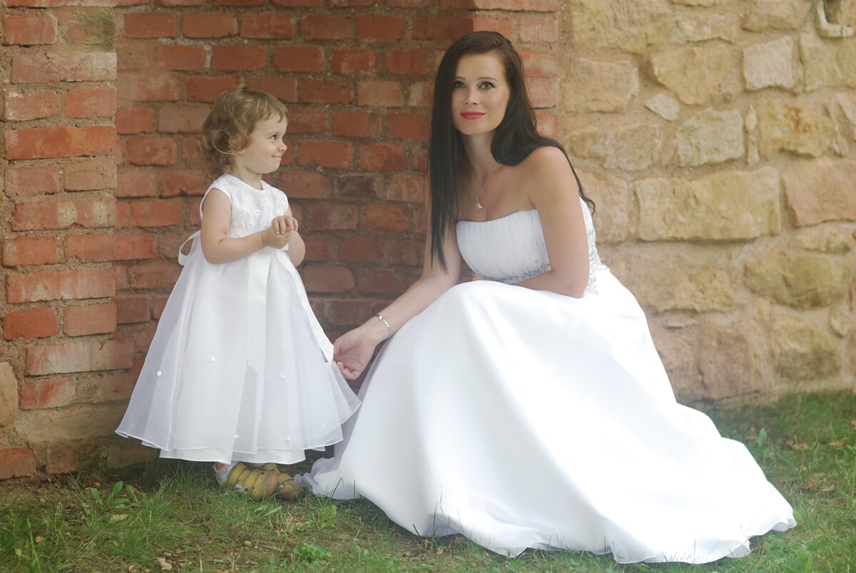 Náš svatební salon nabízí svatební a společenské šaty, obleky pro pány i pro malé rošťáky, šaty pro družičky i malé princezny.